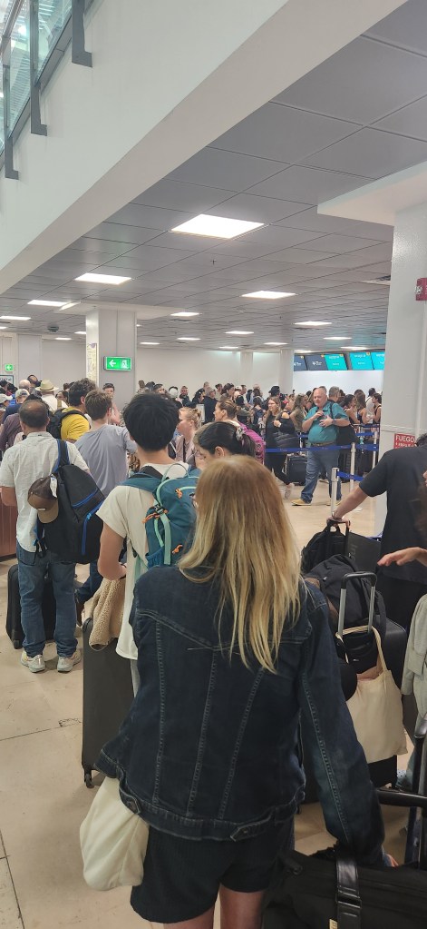 When we got back to the airport in Puerto Vallarta yesterday, one serviceperson was waiting on more than 200 passengers who were anxious about not getting on their flight. We had arrived 2:45 before our flight. 45 minutes into our waiting time, the line-up of people began to applaud as 3 more service people showed up and made the line go quicker. But the picture of the line in my mind demonstrated the enormity of the fear.